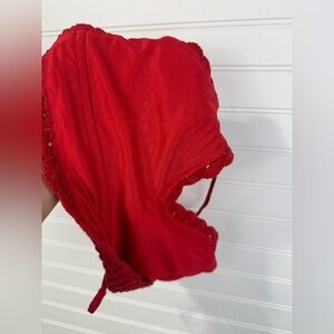 B.O.G Collective women’s red crocheted strapped cropped camo. Size Small, pretty tiny. Adjustable straps, lightly lined inside (front only). Nice condition!