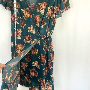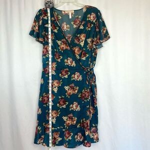 B.O.G Collective Beautiful Green Floral Faux Wrap Mini Dress Juniors size: Large