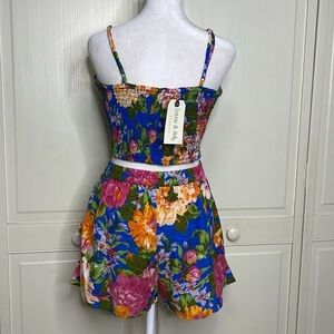 BOG Lottie & Holly Women 2 Piece Set Cropped Tank Shorts Floral Set Pink Blue L