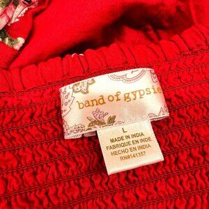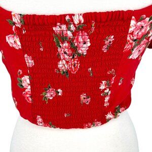BOG Red Floral Crop Top Flutter Sleeves Ruched Front Size Large