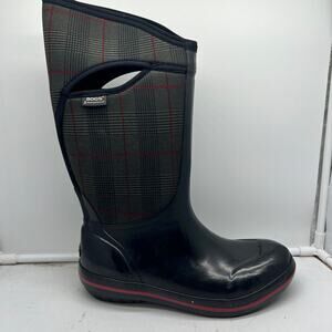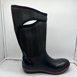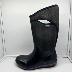 BOG Snow Boots Womens 10 Plimsoll Prince of Wales Tall Black Winter Plaid
