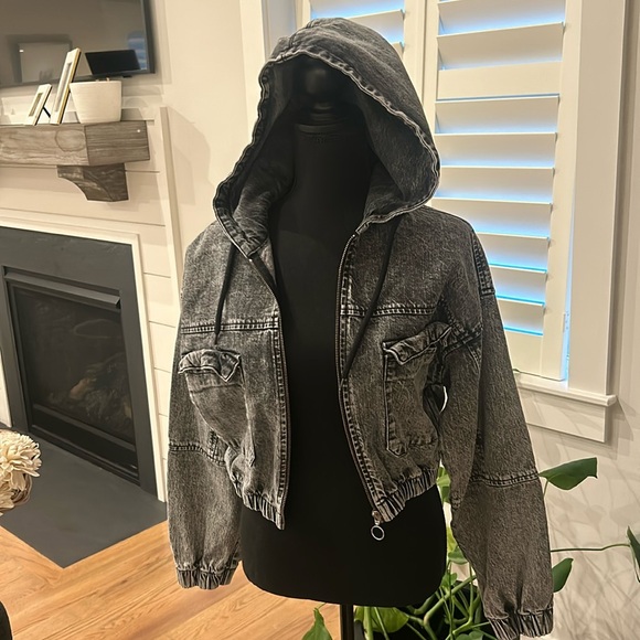 BOG black washed denim jack cinched waist and sleeves