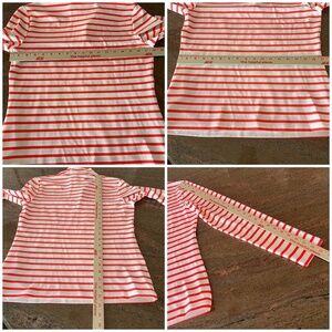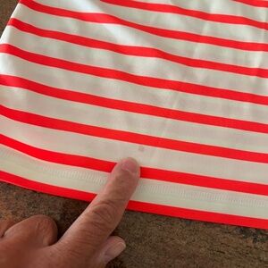 Top is white and orange, and has a tiny mark on the front by the hem and womens size 8-M