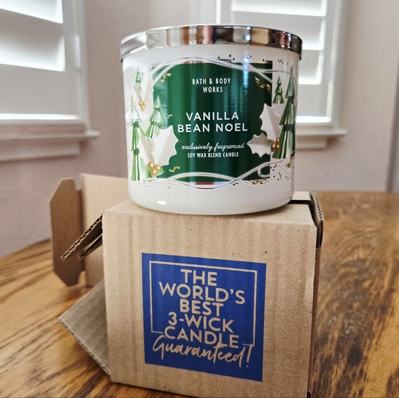 🕯NWT‼️ Bath & Body Works "Vanilla Bean Noel" 3-wick Candle. Beautiful decorative lid. Fragrance notes of fresh vanilla bean, marshmallow fluff, and vanilla cake.