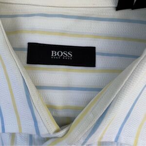 BOGO 50%OFF Hugo Boss Long Sleeve Shirt Mens 16 White Striped Tailored Designer