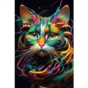 Unleash your inner artist with DIY's 5D Diamond Rhinestone Mosaic Neon Cat Kitty Art Set. The kit features a striking neon multicolor design to create a captivating masterpiece.