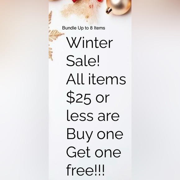 All items in closet $25 and under on sale! Buy one get one free, bundle up your 7 items per box, thank you 😊 All other items higher than $25 1/2 off!!!