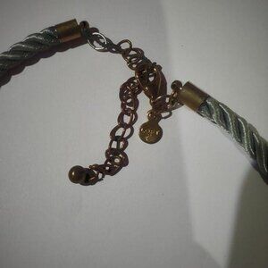 VINTAGE ANN TAYLOR "LOFT" CLASSIC STATEMENT NECKLACE OF LUMINESCENT BEADS OB BRAIDED LEATHER CORD CHAIN - SIGNED "LOFT" BY CLASP - MEASURES 22" IN TOTAL LENGTH AND HAS A 2" EXTENDER.