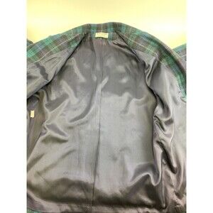 BOGO Alfred Dunner Plaid Wool Blazer One Button Shoulder Pad Green Navy Women 14
