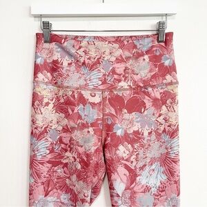 Anthropologie Daily Practice Allie leggings in a soft dusty pink/blue floral print, polyester/spandex blend, high rise, cutout with ties, scalloped hems. Excellent pre-owned condition. Offers welcome!