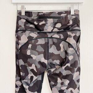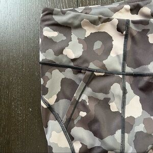 Athleta Lightening Camo 7/8 legging in black/gray combo, hip pockets, high rise, back zip pocket, hidden inside pockets, polyester / spandex blend. Great pre-owned condition, lettering starting to peel on the inside. Size Small. Offers welcome!