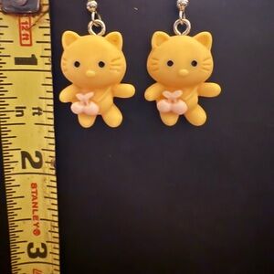 Adorable yellow cat earrings with a playful design. Perfect for adding a fun touch to any outfit.