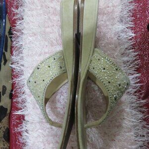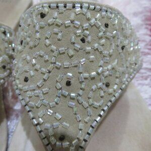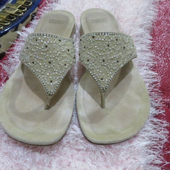 FRANCO SARTO EMBELLISHED BEADED SAND/TAN BLACK ITALIAN SUEDE THONG SEE MY LISTINGS FOR SAME SHOE 2 MORE COLORS