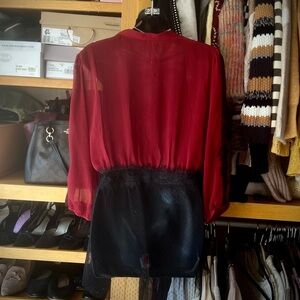 ⭐️BOGO FREE⭐️ BUCKLE BOUTIQUE Red and Black Sheer Lace Blouse