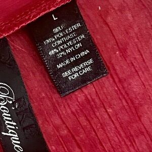 Elegant red and black sheer blouse with lace details. See pics for measurements. Polyester & nylon details. No stretch.