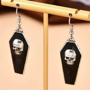 *BOGO FREE* Black coffin earrings adorned with a skull