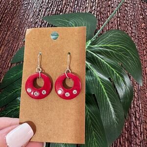 BOGO FREE CUT OUT RETRO RED SPARKLE DANGLY EARRINGS