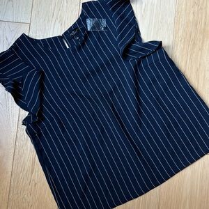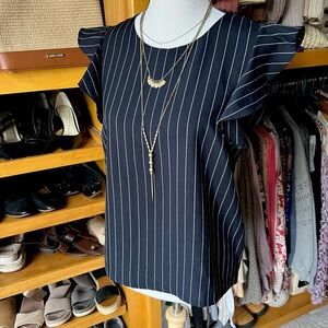⭐️BOGO FREE⭐️ NWOT MILK & HONEY Navy Blue Striped Ruffled Cap Sleeve Top