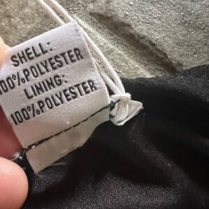 Lined. Back zipper. Polyester.