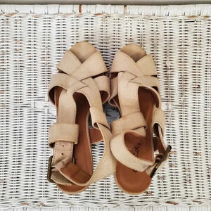 ✨BOGO FREE✨ Qupid | Woven Cream Buckled Peep toe Platform Leather Wedges