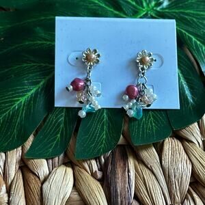 BOGO FREE SILVER CLUSTER BEADED FLORAL EARRINGS