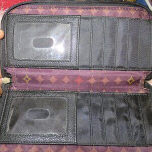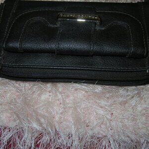 BOGO Franco Sarto Black Leather Long Wallet Clutch Double Zip Multi Compartment
