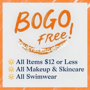 For BOGO Free savings, Bundle your favorite items in Swimwear, Makeup & Skincare and “All items $12 or Less”. I will send you an exclusive Offer with the item of equal or lesser price Free.