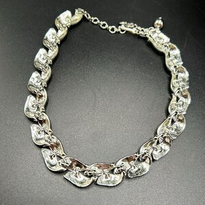 Lisner Matte Textured Silver Leaf Choker Necklace