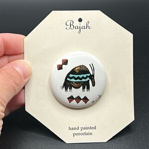 BOGO Free Jewelry…New Bajah Signed Hand Painted Antelope Porcelain Brooch Pin