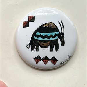Bajah Signed Hand Painted Antelope Porcelain Brooch Pin