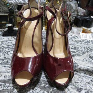 BOGO Giuseppe Zanotti Pix Burgundy Leather Peep Toe Plato Sandal Size 37 7 US