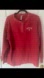 Great condition- lighting is weird in these photos- shirt is solid red, not faded at bottom.collar, cuffs and button trim are made to look weathered/vintage/faded.