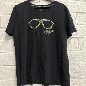 Vintage Karl Lagerfeld Black Short Sleeved Tee Shirt T-Shirt Sunglasses & signature Lg