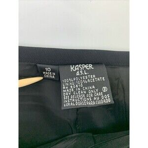 Kasper A.S.L. Skirt Suit Black Blazer Button Straight Knee Pencil Zip Womens 10.