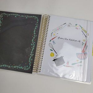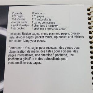 Contents include measurement equivalents, conversion and substitutions, notes, divided sections (breakfast, sides, main dishes, desserts, and misc), a section for weekly meal planning and shopping list.