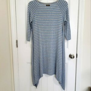 Matilda Jane Blue & Gray Striped Dress - Handkerchief Hem, Super Soft Knit