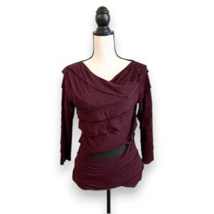 🍂BOGO🍂 Max Studio Maroon Asymmetrical Ruffled With Mesh Top NWT - Small