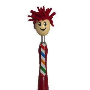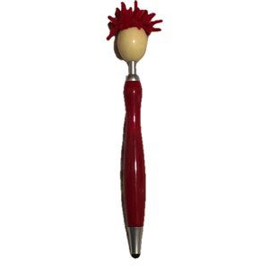 Mop Head Red Plastic Ballpoint Pen Stylus Screen Cleaner Cartoon Smiling Face 6.5"; Black Ink; Unique Conversation Piece, Many Uses; The Hair is Microfiber Strings used as Screen Cleaner; Get yours before they are gone! 4 oz. L101