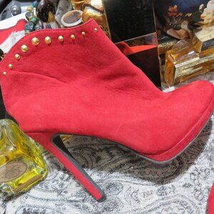 BOGO Mossimo Vibrant Red Suede High Heeled Ankle Booties Studded Embellished 9