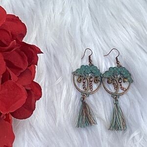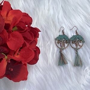 BOGO New Turquoise Blue & Copper Southwestern Boho Tree Of Life Tassel Earrings