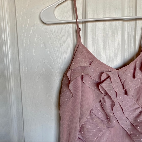 Cute mauve colored blouse, fully lined with adjustable straps. Discoloration on the inside isn’t noticeable when wearing (see last photo).