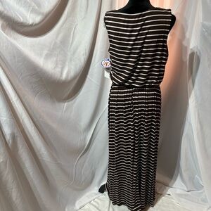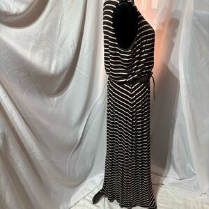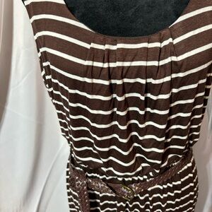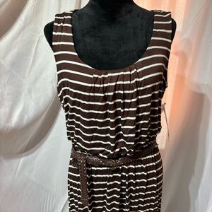 BOGO Signature by Robbie Bee Brown/Ivory Striped Belted Maxi Dress Size: L