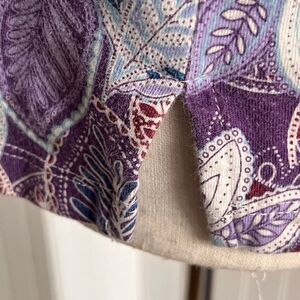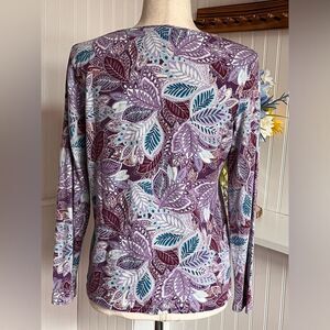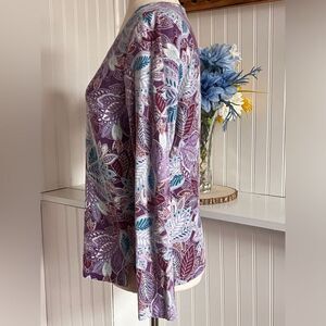 Beautiful and lightweight top with a striking purple leaf pattern.