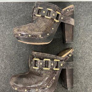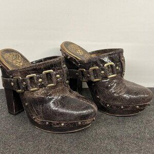 BOGO Vince Camuto Sz 6 Christies Brown Distressed Leather Platform Clogs Mules