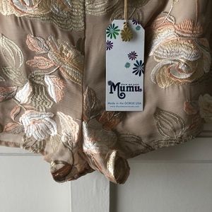 In Very fairy floral. Wonder how she glistens and shines? Well, it’s fairy magic, duh, aaaaand, some super shiny embroidery floss! Ya, this little gal is actually embroidered! Yellow gold, rosey pink, and silvery olive all come together for this Very Fairy Floral print. With all that in the mix you can totally wear whatever jewels and gems you want! Did I mention IT HAS POCKETS? *MADE IN THE GORGE USA*