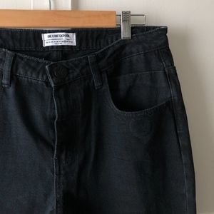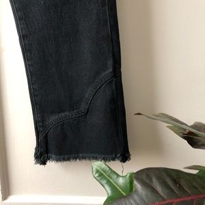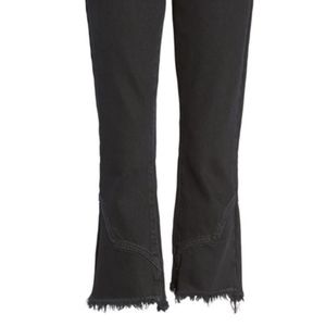 Tonal, Western-inspired stitching surrounding frayed hems adds subtle cowboy character to cropped flares. (Second image does not reflect wash. Denim is black w/o fade.)