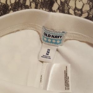 Girls: 2 NWT white old navy leggings (XS 5T)/ 2 Circo navy blue and white polka dot leggings (XS 4/5) in good used condition, 1 black and silver jeggings (5T) NWT/ 1 Cherokee multi striped tights (3T-5T) NWT.
