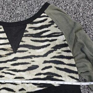 Suzanne Betro- Great condition long sleeve animal print tee. (60% polyester / 35% rayon / 5% spandex- Contrast: 94% polyester / 6% spandex)