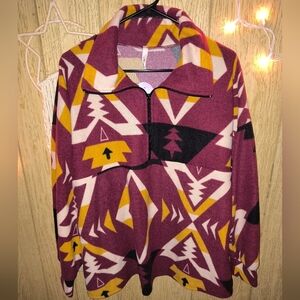 🇺🇸BOGO🆓-Burgundy Aztec Printed Long Sleeve Zipped Top