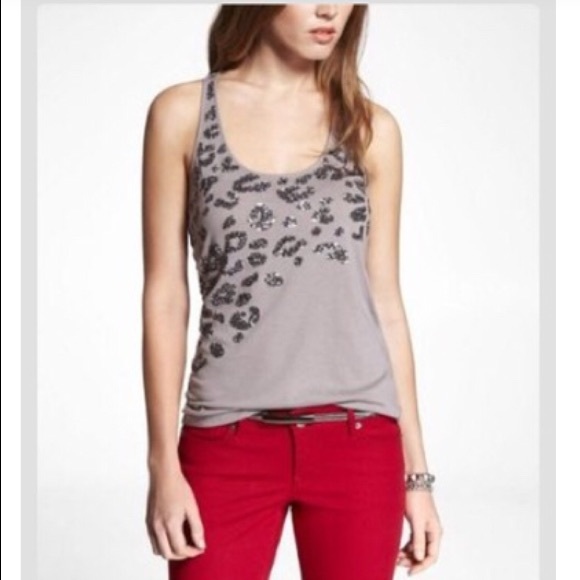 Express Leopard Sequins Racerback Tank is in gently used condition. No sequins are out of place and no noted flaws. Retails: $40